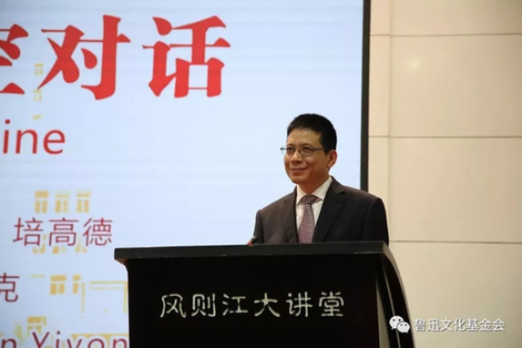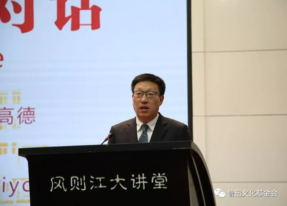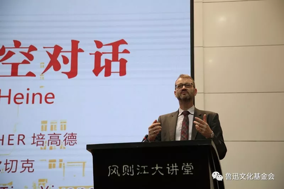 鲁迅长孙、鲁迅文化基金会会长周令飞先生作主题演讲《鲁迅、海涅与中德文化交流》,他对远道而来的德国嘉宾和现场观众表示了热烈的欢迎,同时表达了“大师对话”对于中德两国之间的文化交流发展的积极意义。
