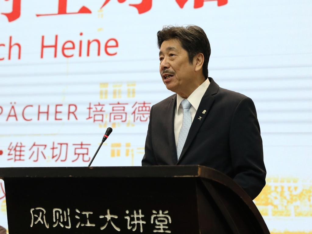 培高德用一口流利的中文向大家讲述了海涅眼中的中国。他用图片的形式展现了海涅作品中提到的中国的陶瓷、中国的丝绸,中国的四书五经、中国语言、文字、历史和中国的地理。