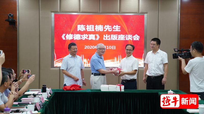 据了解,陈祖楠先生的专著《修德求真》已由浙江人民出版社出版。在书中,他对每一段故事,每一个细节都认真回忆,细细刻画,让在场的校友纷纷回忆起了往日的校园时光。座谈会现场,举行了《修德求真》首发仪式,陈祖楠先生还向文理学院图书馆校友书架捐赠了一批书籍。