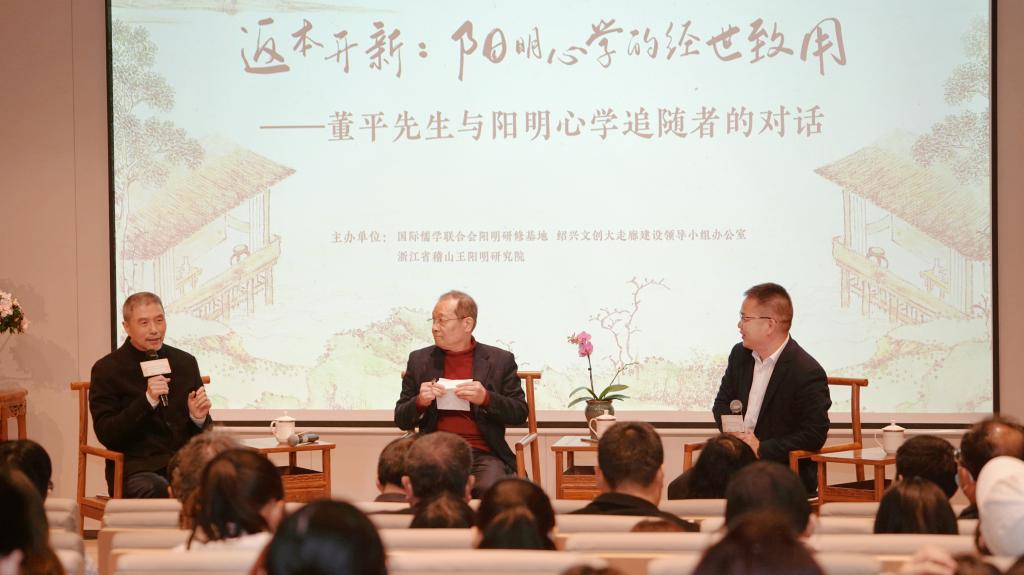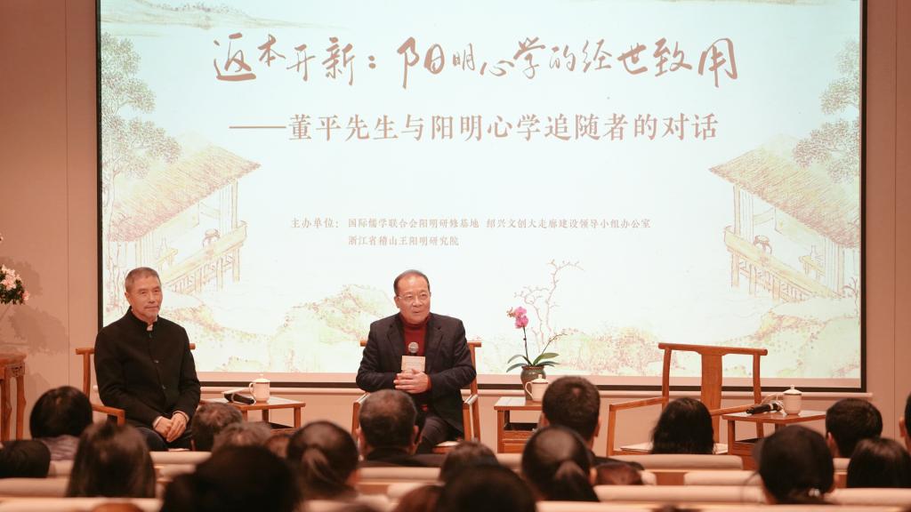 为解开这些问题的“心结”,国际儒学联合会阳明研修基地、绍兴文创大走廊建设领导小组办公室、浙江省稽山王阳明研究院联合举办“返本开新:阳明心学的经世致用——董平先生与阳明心学追随者的对话”活动,特别邀请我国阳明心学权威专家、浙江大学求事特聘教授、浙江稽山王阳明研究院院长董平与多位阳明心学追随者、实践者,就一系列问题进行“对话”。