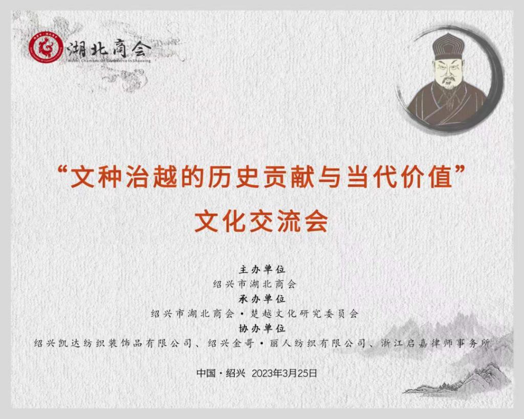 “文种是在勾践被迫入吴时开始主持国政的,越国经济也是在吴国的剥削掠夺中发展起来的。文种治越首先是发展农业,其在民众层面推行无为而治,让利于民,无夺民好;在国家层面则是大规模扩充人口和大规模开垦田地。通过近二十年的大规模人口繁殖和农业发展,在民富国强的基础上又通过谋略削弱吴国进而灭吴称霸,文种这种遵循经济发展规律和社会发展规律的循序渐进的经济思想放在今天仍然是非常具有启示意义的。”绍兴市湖北商会执行会长汪宏伟说。