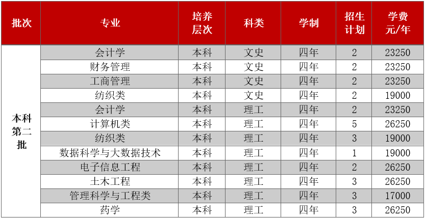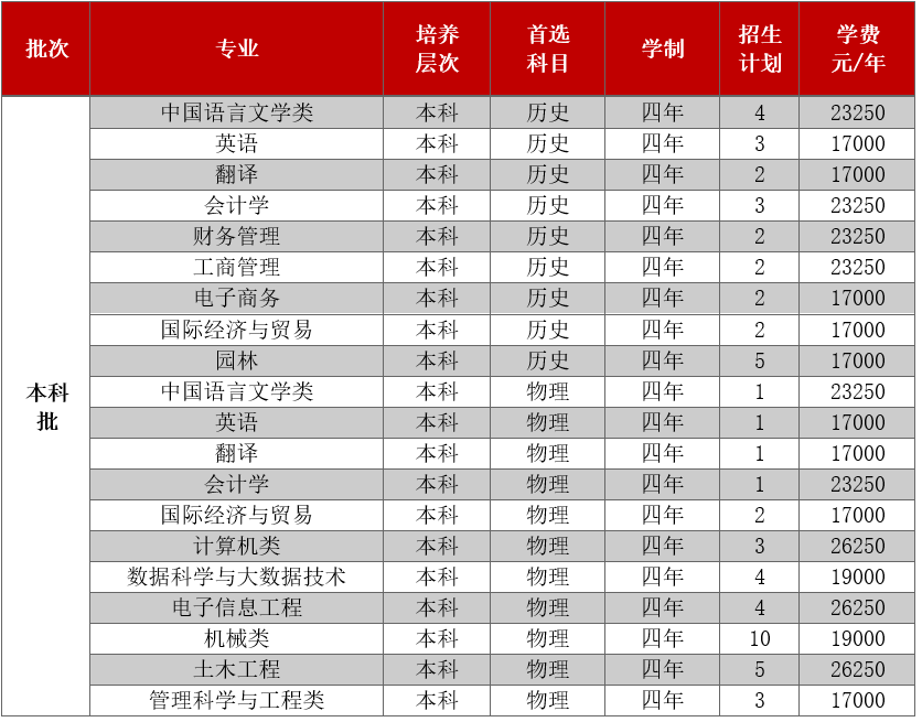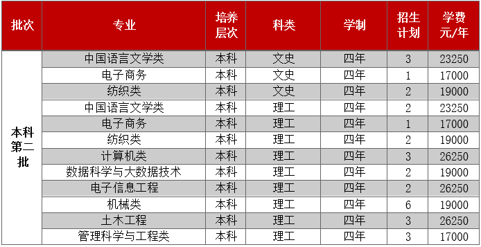 只面向浙江省招生,共有5个专业参与招生。其中面向普通类平行计划招生280人,艺术类第二批美术类120人。