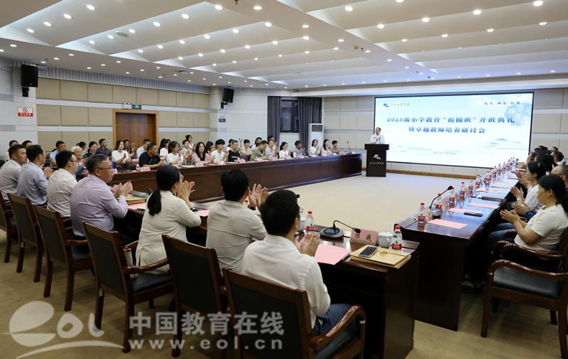 2023小学教育“祖楠班”顾问周一贯先生向全体师生分享了自己的教育生涯。他表示,即便年迈,但只要尚存气息,依旧会坚定不移热爱教育事业。他希望“祖楠班”学员能按照教育家标准去锤炼自我,为教育强国而奋斗终身。