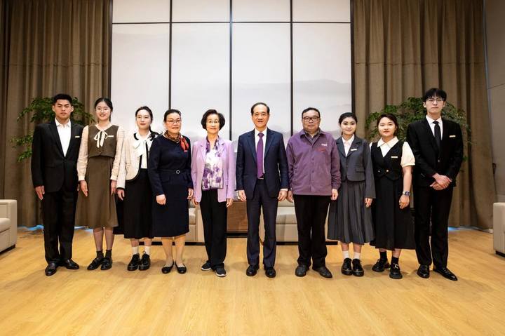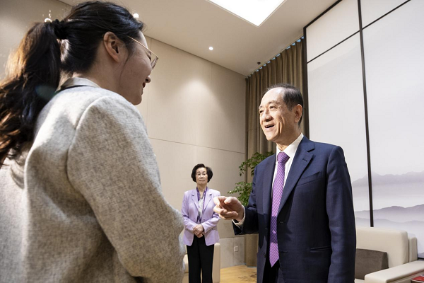颁奖典礼前,韩启德院士和袁明教授在接待室亲切接见了获奖师生。