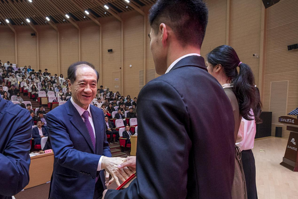 获奖学生代表黄楚皓发言。他表示,获得“卓越奖学金”是一个新的起点,是对未来发展的鞭策和鼓舞,他将以“卓越”为引领,用更加饱满的热情和更加笃实的行动,不断提高自己的综合素质。