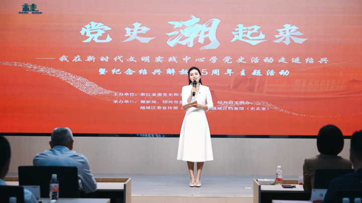5月7日,“党史‘潮’起来——我在新时代文明实践中心学党史”宣讲活动走进绍兴,纪念绍兴解放75周年。来自绍兴各县(区)、乡镇街道的党员干部、在绍高校大学生代表等逾百人参加活动。