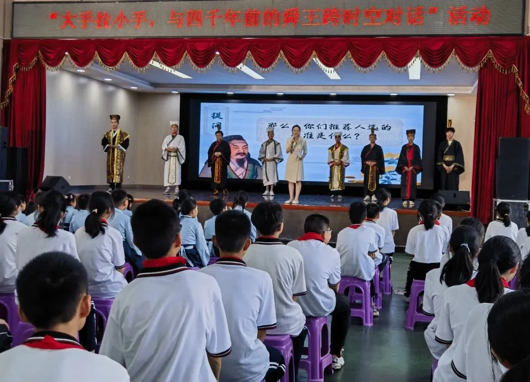 5月18日,“大手拉小手,与四千年前的舜王跨时空对话”活动在浙江省绍兴市柯桥区王坛镇中学体育馆圆满举行,活动利用思政大讲堂,助推传统文化实践育人成效。
