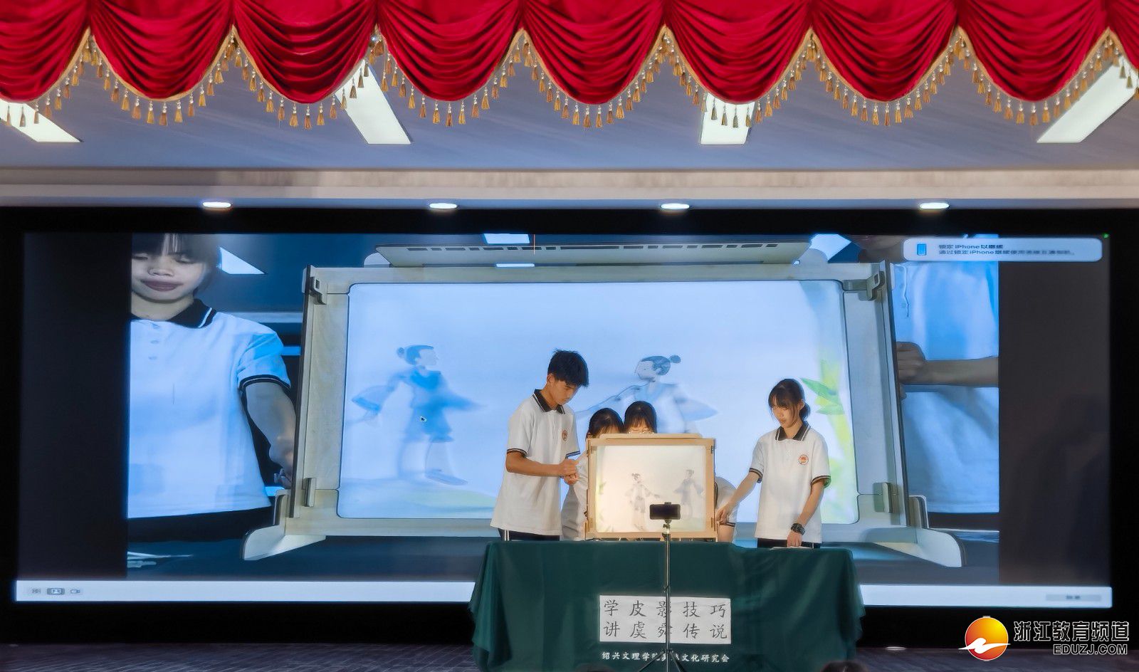 在活动现场,王坛镇中学生展示《学皮影技巧,讲虞舜传说》,一块白纸就是一方天地,一声戏腔就是一个故事,唱尽虞舜美德。