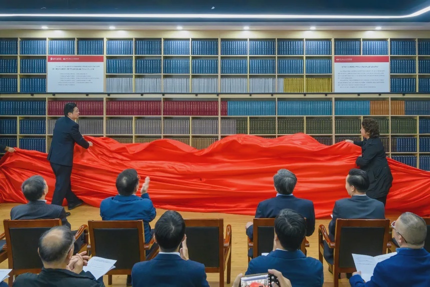 随后举行捐赠仪式,浙江越生文化传媒集团向高等人文研究院捐赠“中国近代文献保护工程”系列出版文献11类,共计1237卷,1737册。崔凤军与寿林芬为捐赠书籍揭幕。张旭、张西龙、黄晓新共同见证这一重要时刻。