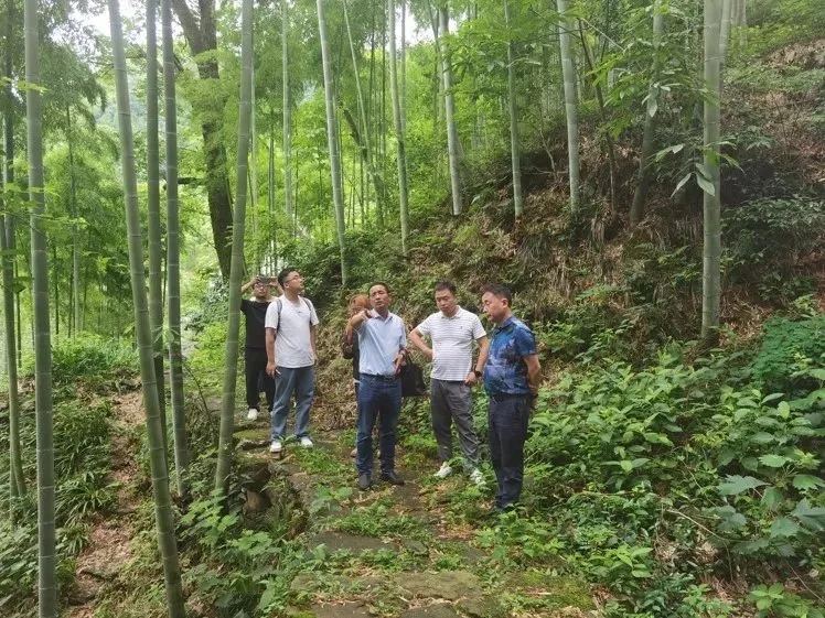 图为浙江农林大学风景园林与建筑学院风景园林学科教工党支部教师在大溪村进行古道调研