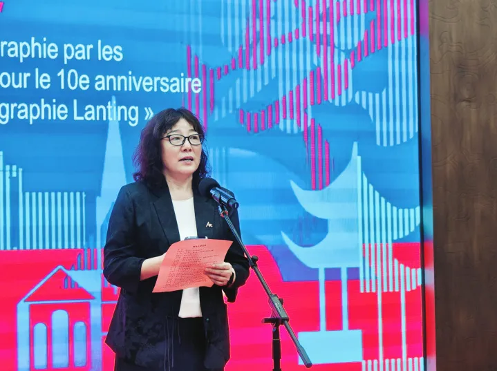 张雪代表绍兴市政府向远道而来的瑞士友人及各位嘉宾致以热烈欢迎,向为文化交流辛勤付出的工作者表达衷心感谢,并宣布展览开幕。她表示绍兴因《兰亭集序》成书法文化地标,又因“兰亭书法学堂”搭建起中瑞文化交流桥梁,让瑞士学员不仅掌握书法技法,更领略到 “天人合一”“刚柔并济” 的东方智慧,同时也让中国感受到艺术无国界的魅力,实现了双向的文化交流与对话。未来,绍兴将以书法为桥,深化国际文化交流,让这座城市成为世界文明互鉴的舞台。