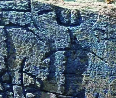 “五”字中部残损亦为刊刻所致。笔者试延长交叉线还原该字时发现“X”处右笔竟不能相连(见上图),且整个石面中A部分高耸而最为脆弱,因此在“前”“可”“百”“五”之间因刊刻而导致剥落最为严重(见图④)。