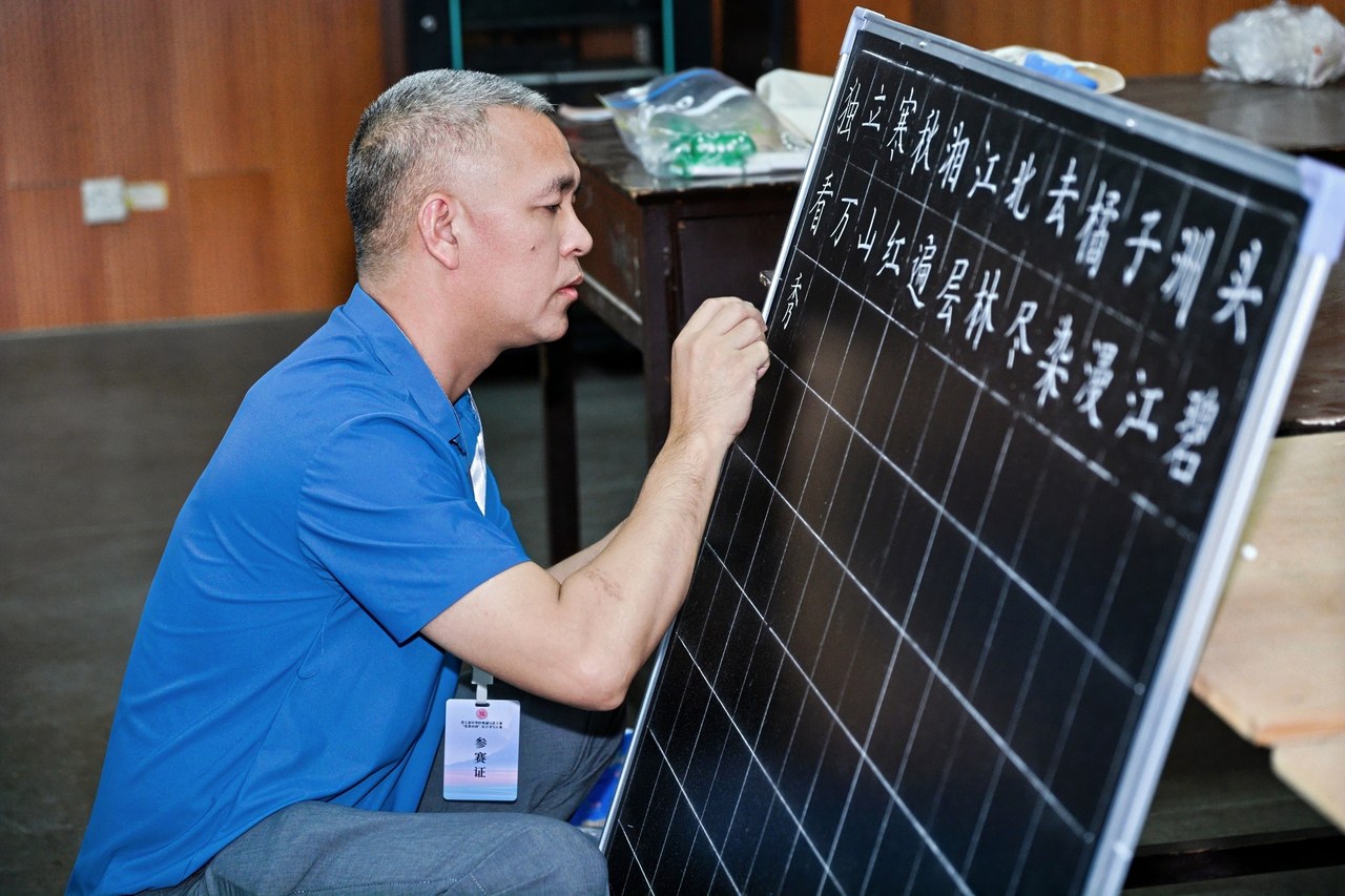 汉字是中华文明的基因,书写是文化传承的重要方式。粉笔书法既是教师教学的基本功,也是一门黑板上的艺术——于方寸之间展现布局之美,在勾提转折中传递文化神韵。本次大赛专设粉笔组别,体现了对教师书写能力与美育素养的高度重视,也是对师范生教学基本功的一次实战检验。选手们以粉笔为媒、汉字为体,书写经典、传续文脉。(记者 顾蓉佳)