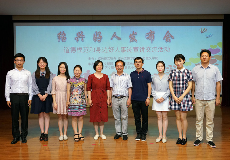 “道德模范和身边好人事迹可信可亲可敬,以向上向善的力量,创建新时代的道德新风……”5月17日下午,由市文明办、我校马克思主义学院主办,绍兴文明网、柯桥区委宣传部、柯桥区文明办和绍兴鲁迅中学共同承办的绍兴好人发布会暨道德模范和身边好人事迹宣讲交流活动在绍兴鲁迅中学举行,市委宣传部副部长、市文明办主任徐荻,柯桥区委常委、宣传部长杨伟卿,市文明办副主任俞继抗,马克思主义学院党总支书记陈林刚出席并颁奖。