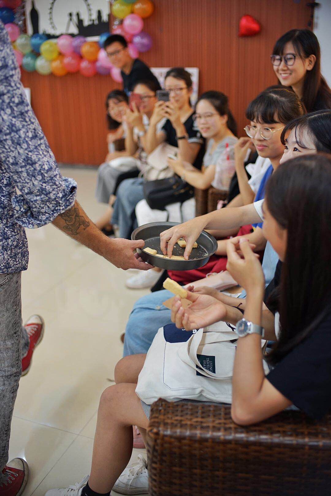 美国馆的美国外教Brock让同学们做自我介绍,同学们因第一次独立和外教面对面交流而格外激动。介绍结束后,不少同学饶有兴致地玩起了英语单词拼词游戏Scrabble卡。