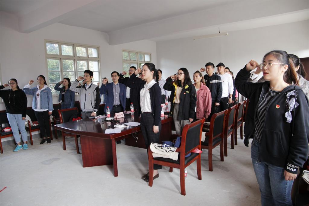 来自土木工程学院的2018级硕士研究生高书宇同学作为新生党员发言,并在党旗下作出了不忘初心、砥砺前行,勤奋学习、提高自我,乐于奉献、修养品德的承诺。周聚同学以《走过宋六陵、传承鸿鹄志》为题给各位新生党员讲了一堂生动的微党课。