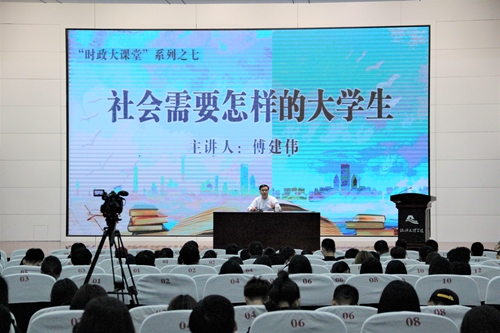 10月31日晚,“时政大课堂”系列之七在铁城科教馆报告厅开讲。傅建伟教授作题为《社会需要什么样的大学生》的讲座。
