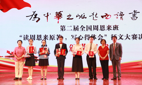 在征文大赛决赛现场,参赛选手们通过演讲、朗诵、话剧、诗歌等方式表达对周总理的怀念之情。