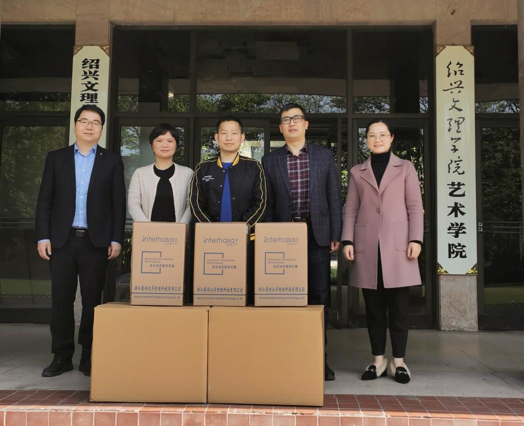 4月20日上午,艺术学院黄献芬校友向学校捐赠感应杀菌喷雾净手器11组,助力学校开学后疫情防控。黄献芬是我校艺术学院2006届环境设计专业毕业生,毕业后一直关注母校发展。听闻学校即将复学复工,他通过校友林国旗联系了艺术学院,表达向母校捐赠防疫物资的心愿。在采购好防疫物资后,他连夜自驾车从温州将防疫物资送到学校。他说:“我一直心系母校、感恩母校、时刻关注母校发展,希望为母校的疫情防控工作尽自己的绵薄之力。”
