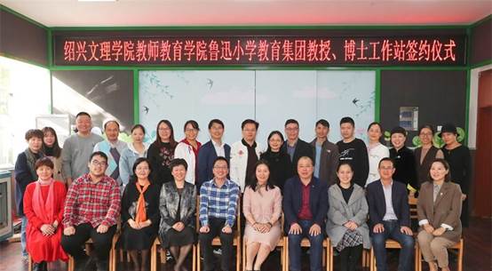 10月23日下午,教师教育学院和鲁迅小学教育集团合作的教授、博士工作站签约仪式在在市区鲁迅小学和畅堂校区举行,这也是我市首个小学教授工作站。绍兴市越城区教体局副局长孙建林、教师教育学院院长陈巍、副院长刘雄英、绍兴市鲁迅小学教育集团(总校)校长王慧琴、鲁迅小学教育集团董事会成员以及双方教师代表参加了此次签约仪式。