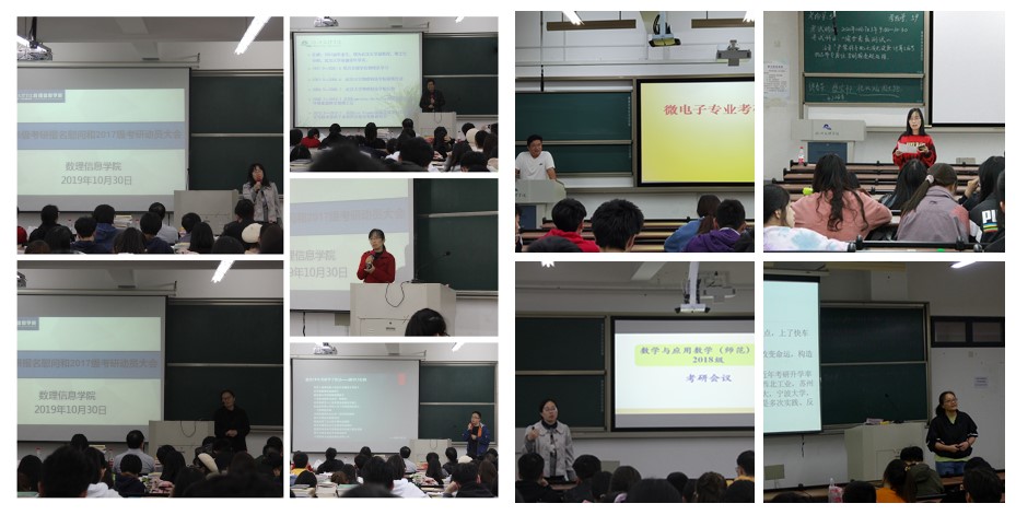校友传帮带,讲授考研路上的实战经验。数理信息学院每月邀请优秀考研校友回校,通过举办考研专题讲座和经验交流会,帮助更多的学生解答考研困惑。每位学长学姐倾囊相授,讲授报考院校及专业的备考经验、复试经验,根据学弟学妹需求,建立考研群提供备考复习经验及资料;分享个人联系方式,对于自身所知做到有求必答。考取厦门大学的原电信161班严梓峻同学说:“学院培育了我们,也成就了我们。学院在我们考研学子身上注入了大量的精力、物力和财力,现在学院邀请我们回校做经验分享,作为数理学子,定当义不容辞,我们要将这种奉献的精神传承下去。”数理信息学院近三年已成功邀请30多位优秀考研校友回校做考研经验分享,帮助了一批又一批学弟学妹圆了考研梦。
