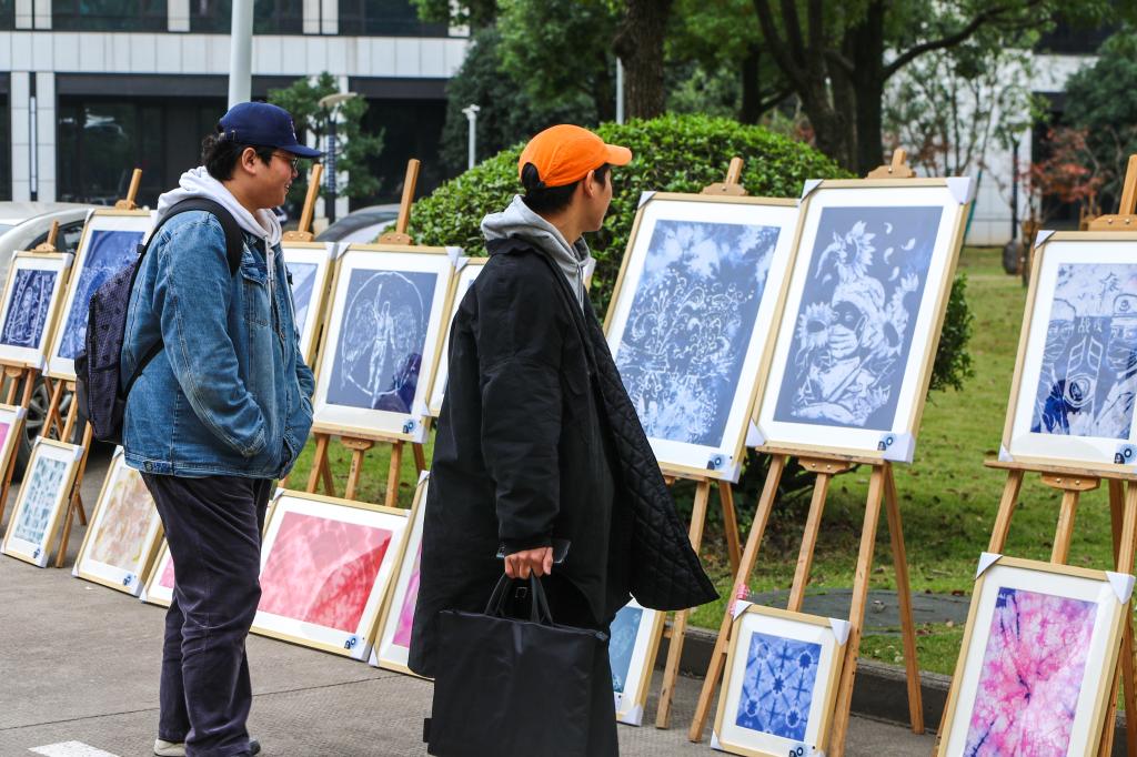 启动仪式结束后,举办了“‘项目驱动’创新创意设计作品展”“非遗传承与创意设计实践体验”“创意设计实践与精彩人生”三个子活动。“项目驱动”创新创意设计作品展共展出120余件扎染、刺绣、书法等创意设计作品,作品围绕抗疫、廉洁文化两个主题展开,主要来自《手工印染技法》《手工刺绣》课程和部分学生创新创意实践项目。