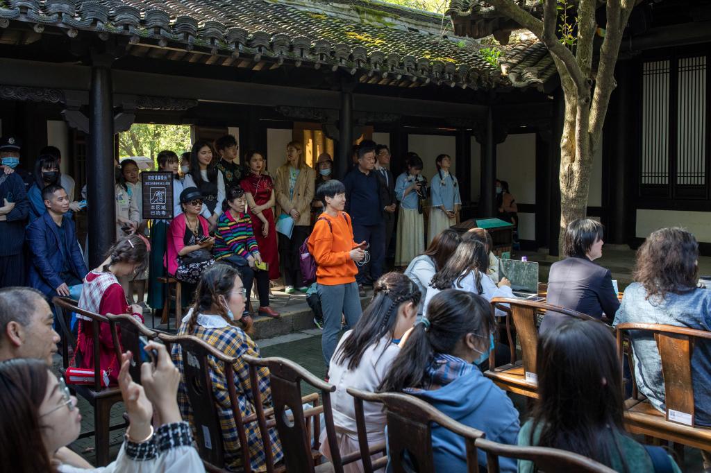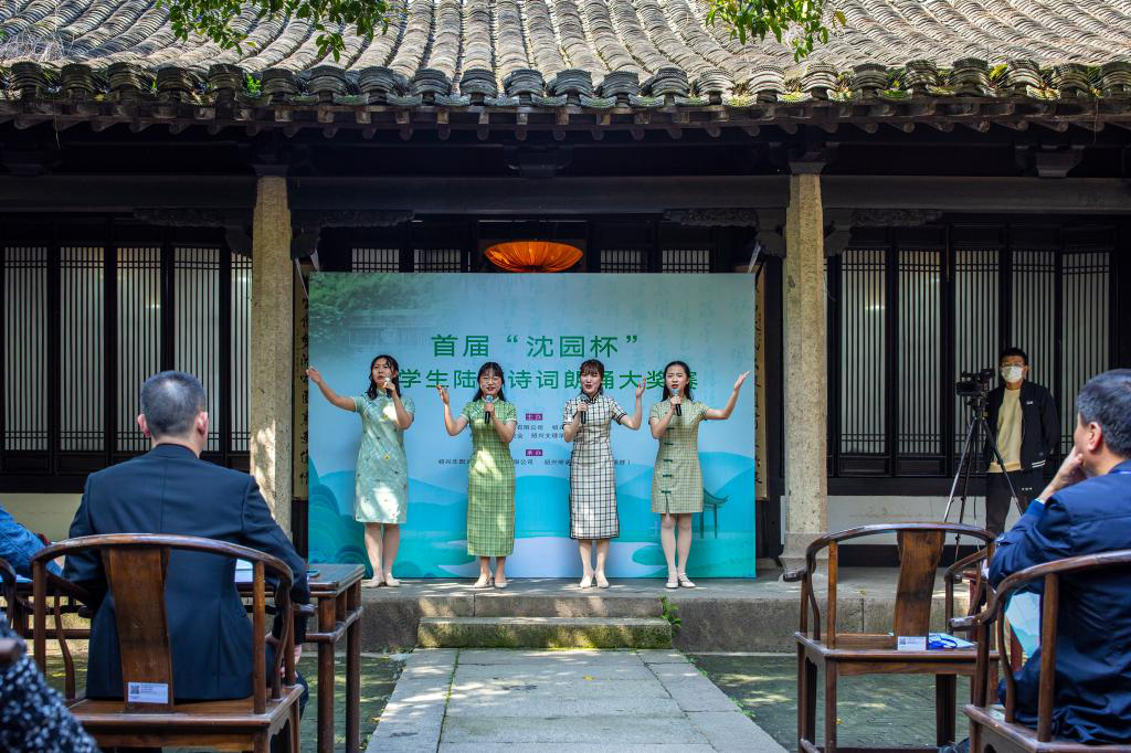 328日下午,由我校人文学院联合绍兴市文化旅游集团有限公司、绍兴市新闻传媒中心、绍兴市陆游研究会主办,绍兴沈园文化旅游发展有限公司与绍兴朗诵协会共同承办的首届“沈园杯”大学生陆游诗词朗诵大奖赛在沈园双桂堂举行。