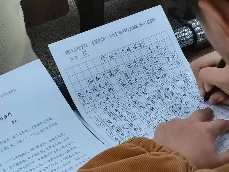 本项竞赛于今年1月启动,各二级学院在3月中下旬举行初赛选拔,最终有来自于人文学院、马克思主义学院、教师教育学院、商学院、上虞分院、纺织服装学院、生命科学学院、医学院等12个二级学院200多名选手进入4月中旬的决赛。本次书写竞赛分为规范字书写和经典作品解读写作两个部分内容,旨在通过书写经典、解读经典,提升我校学生对于中华经典作品的弘扬。