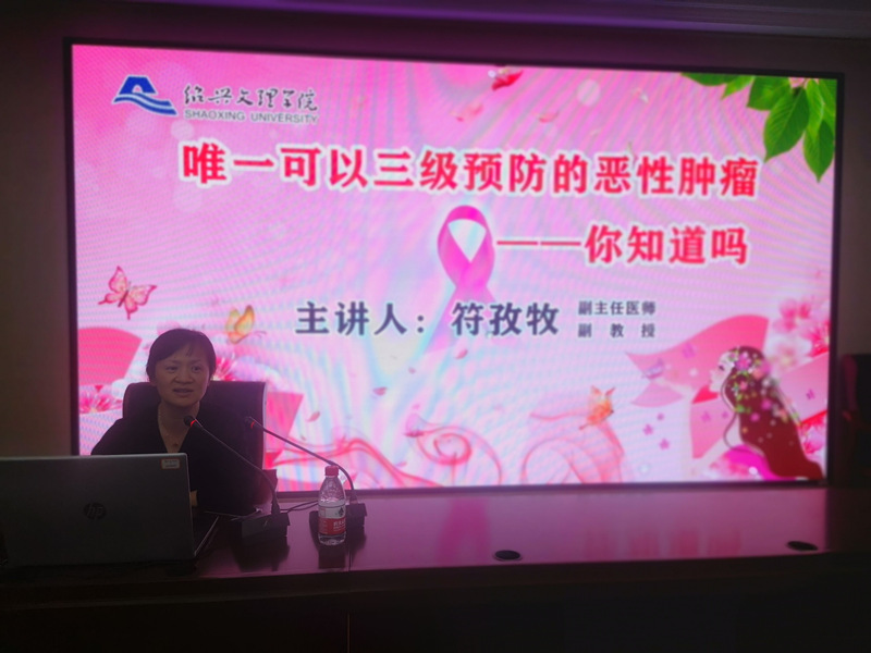 本周是全国肿瘤防治宣传周, 4月21日下午,校妇联邀请绍兴市妇幼保健院有关专家在南山校区综合楼A405开展预防肿瘤科普讲座,校妇联主席陈红主持讲座,校妇联执委、校女工委、教职工和学生代表共100余人参加。