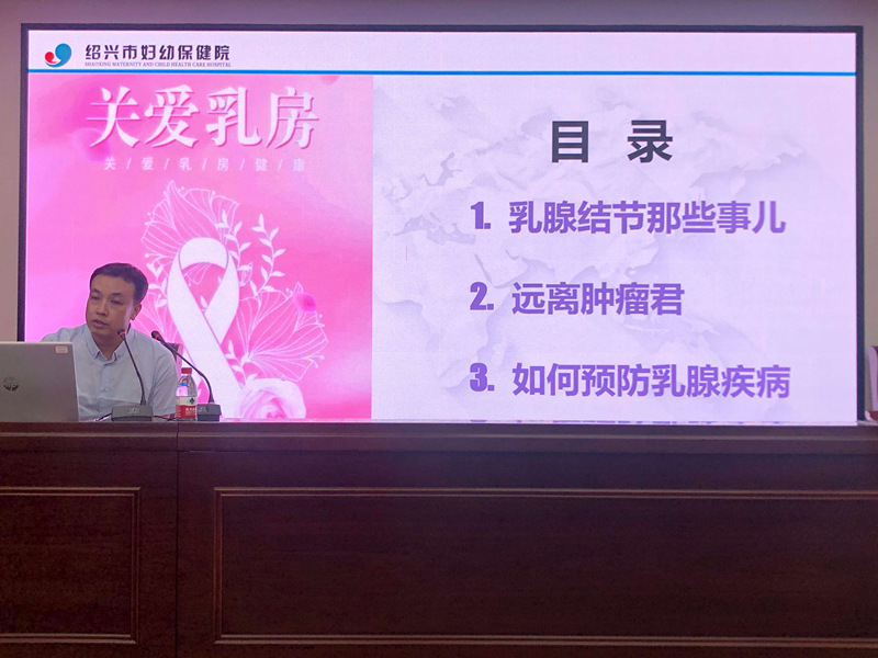 绍兴市妇女保健院的王春雷主任医师的《关爱乳腺 关爱生命腺》讲述了乳腺结节那些事、远离肿瘤君、如何预防乳腺疾病;符孜牧副主任医师的《唯一可以三级预防的恶性肿瘤 ——你知道吗》,讲述了如何三级预防宫颈癌,一级预防:接种 HPV疫苗、健康生活方式;二级预防:筛查和治疗癌前病变;三级预防:早诊早治。