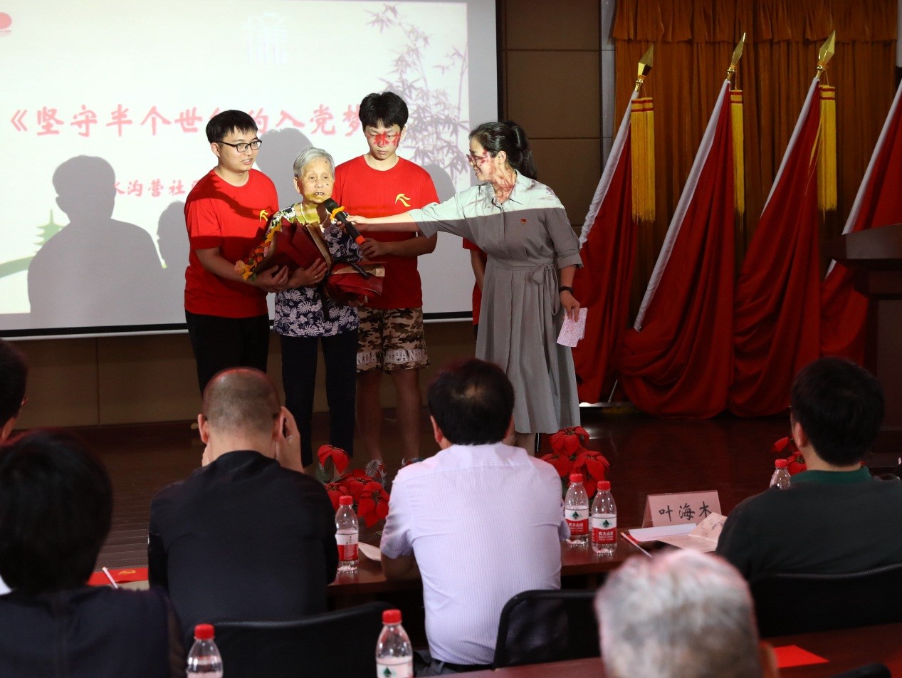 大家集体观看了由校马院思政191班学生拍摄制作的水沟营社区百名党员采访实录《百名党员一颗心》视频,认真聆听了九旬高龄老党员黄珠花《坚守半个世纪的入党梦》的事迹,无不为老党员们对党和人民坚定不移的信仰力量所动容。