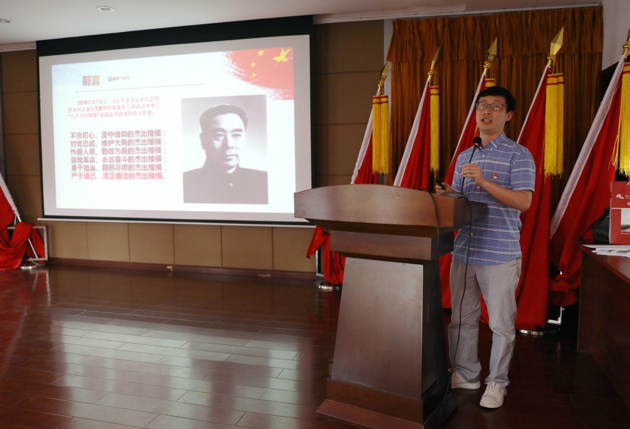 马克思主义学院周勇军博士和思政191班孙畅同学分别为大家讲述题为《严于律己、清正廉洁的杰出楷模周恩来》和《做一个利国利民的东西南北人——俞秀松》的微党课,大家重温了绍兴籍革命先贤的崇高理想,感悟共产党员的初心使命。