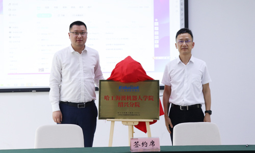 会上,信息与机电工程分院副院长冯方简要介绍哈工海渡机器人学院绍兴分院建设规划。沈红卫与尹政现场签约,共同为“哈工海渡机器人学院绍兴分院”揭牌;学院副院长李黎与尹政为“机械行业能力评价考试站”揭牌;信息与机电工程分院书记兼院长潘慧与封佳诚为“FANUC机器人授权培训中心”揭牌;信息与机电工程分院副书记宣仁旗与俞士熔为“校企合作基地”揭牌。