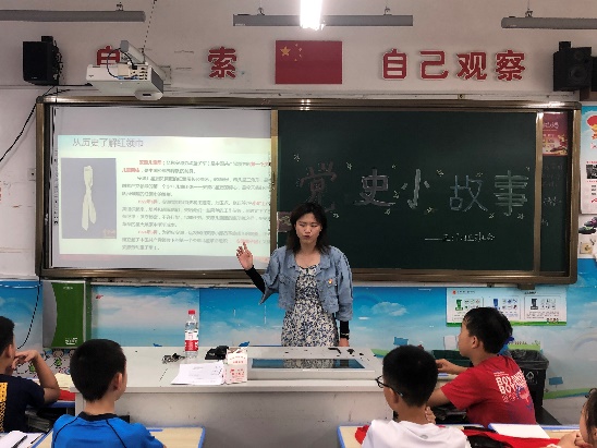 “同学们,请问你们是否了解红领巾的前世今生?”毕业生党员、思想政治教育(师范)171班的胡晶晶在参加完毕业典礼后,站在鲁迅小学5年级(2)班的讲台上为少先队员们带去了生动的党史小故事,通过现场系红领巾比赛、峥嵘岁月情境演绎、知识竞答、集体朗诵、齐唱队歌等创新设计,让他们对天天相伴于胸前的红领巾有了更深的感情,同时也树立了少先队员们“从小听党话,永远跟党走”的决心与信念。