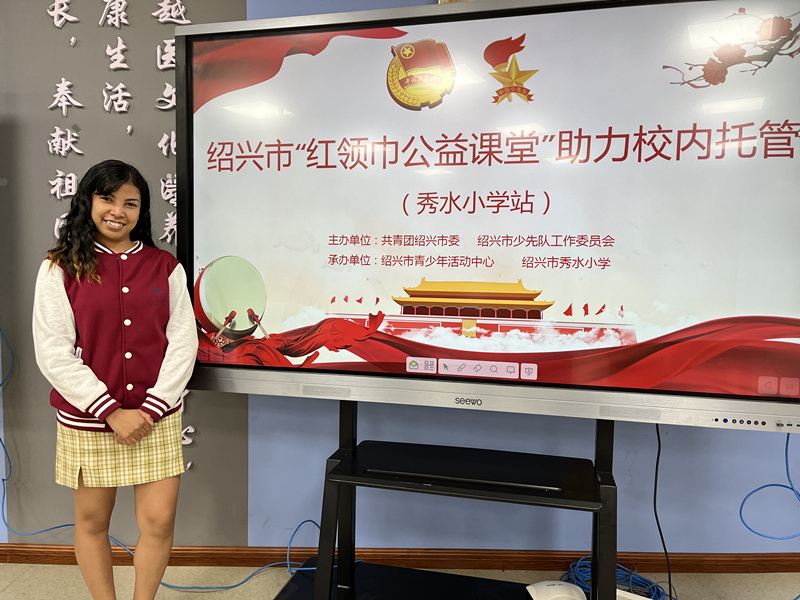 随着“双减”政策的落地实施,我校留学生志愿者积极响应绍兴团市委红领巾公益课堂的号召,投身到小学生课后托管服务中。