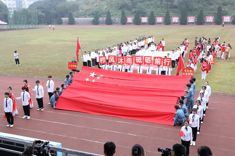 为庆祝中国共产党成立100周年,落实全民健身和健康中国国家战略,倡导师生文明健康生活方式,展示我校学子体育风采。10月28日-29日,我校举行第二十七届田径运动会,各二级学院积极参与、精心编排,在开幕式中展现了我校学子“请党放心 强国有我”的责任担当和精神风貌,为建党百年献上青年学子的运动风采。