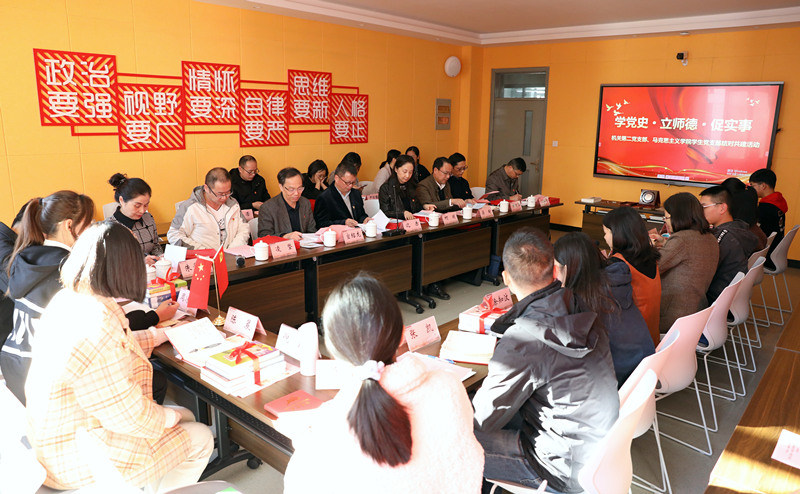 为推动党史学习教育走深走实,全面推进师德专题教育活动,进一步深化党史学习教育“我为群众办实事”实践活动内涵,11月10日下午,机关第二党支部赴马克思主义学院党员之家活动中心,与马克思主义学院学生党支部开展结对共建活动。校党政领导班子成员沈赤、柯羽、宣绍龙、梁瑜以普通党员身份参加活动。
