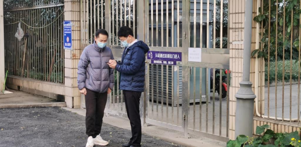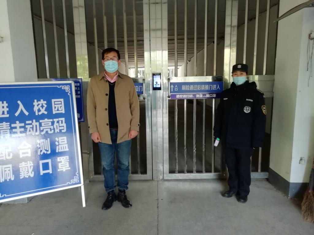 校办叶罕汉在风和苑入口处查验进校人员信息