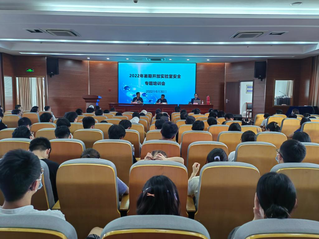 根据学校《关于做好2022年暑期校园安全稳定等工作的通知》《关于做好期末及2022年暑假期间实验室安全工作的通知》的精神和要求,6月30日下午,资产与实验室管理处联合保卫处在岩土大楼7楼报告厅举办2022年暑期开放实验室安全专题培训。暑期开放使用实验室的160余人师生、保卫处、物业等相关人员参加了培训会。