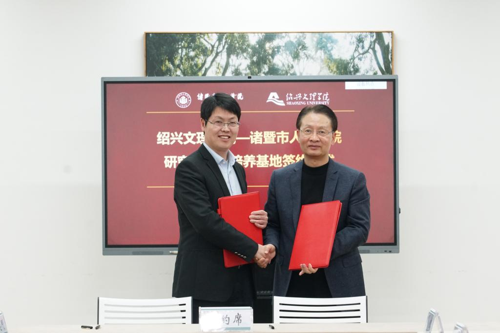 11月19日,我校与诸暨市人民医院医学研究生联合培养基地签约仪式在诸暨市人民医院举行。校党委委员、医学院党委书记、院长郭航远,校党委研工部、医学院相关部门负责人,诸暨市人民医院党委书记杨超,院长周岳松,副院长杨益峰、马云淼、袁铄慧,医院相关处室负责人,导师代表等参加签约暨揭牌仪式。