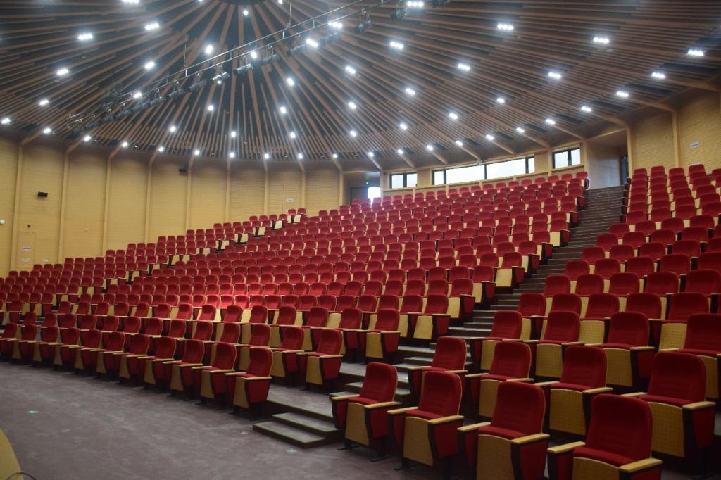 风则江大讲堂以“诗雨伞堂”为设计理念,建筑形态是对绍兴伞文化的抽象表达,采用仿木金属构件、印花玻璃、穿孔铝板等现代材料,展现“伞荫诗书、满堂经纶”的传统讲堂文化意境。11月25日,基建处、资产与实验室管理处、后勤管理处会同浙江中成控股集团对风则江大讲堂舞台灯光等专业设备进行移交,共涉及舞台机械系统、舞台灯光系统、舞台音响系统、舞台LED屏系统、舞台数字会议系统、无线同传系统等设备系统。