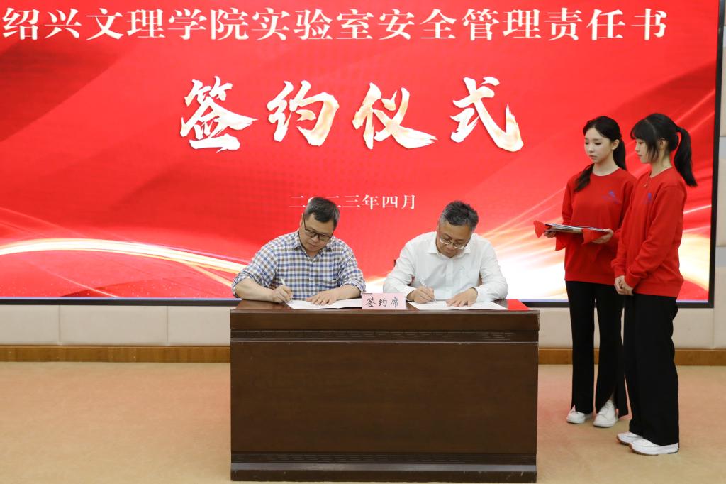 柳国庆与各二级学院主要负责人签订实验室安全管理责任书,保卫处王勇宣读表彰文件。