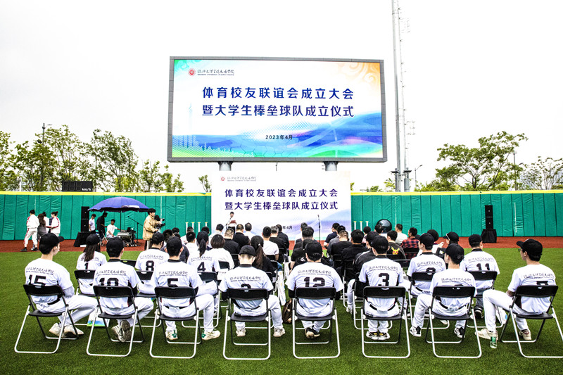 在大学生棒垒球队成立仪式上,学院院长沈红卫为棒垒球队教练颁发聘书,对体育校友联谊会和大学生棒垒球队成立表示祝贺。学院党委副书记石旭明向大学生棒垒球队授队旗。学院党委副书记、纪委书记俞国芬向体育校友联谊会授旗。绍兴市体育局训竞处主任周忠代表绍兴市体育局对绍兴市首支大学生棒垒球队的成立表示祝贺。