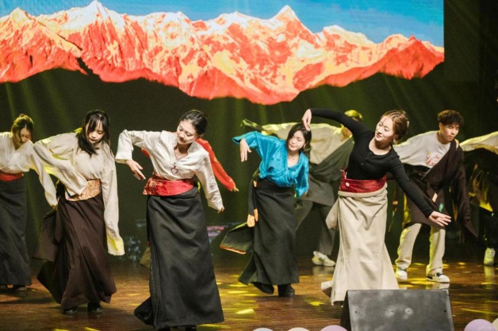 晚会节目精彩纷呈,从合唱、舞蹈、朗诵到梦想剧场、外语配音秀,不同角度展现了外语之美,给现场观众带来了一场视听盛宴。配音秀《Tough Love》用流利地道的英语再现了迪士尼的故事,梦想剧场《荆轲刺秦王》以全英文的方式重新演绎中国历史故事,英文诗朗诵《Youth》用动人而坚定的声音向观众们传递青春的定义。西藏生带来的西藏那曲锅庄舞展现了独特的藏族风情,外文歌曲《City of Stars》宁静深邃,藏文歌曲《月亮的那边有你》意境悠远,钢琴与古筝合奏《雪落世间,人海皆相遇》表达了对毕业生聚散终有时、后会亦有期的美好祝愿。