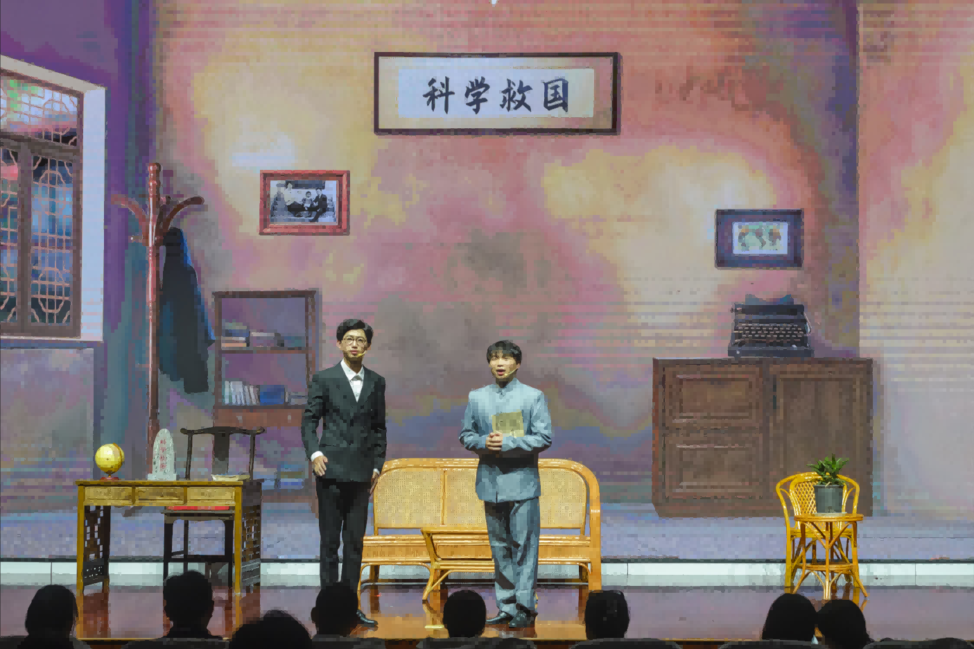 原创话剧《科学之光——此生问天唯求是》由人文学院与市科学家协会联合创作,主要讲述绍兴籍气象和地理学家竺可桢的光辉事迹,通过对其生命中重要片段的展现,勾勒其务实求是、知难奋进和知行合一的一生,赞颂老一辈科学家追求真理、崇尚创新、实事求是的科学精神。