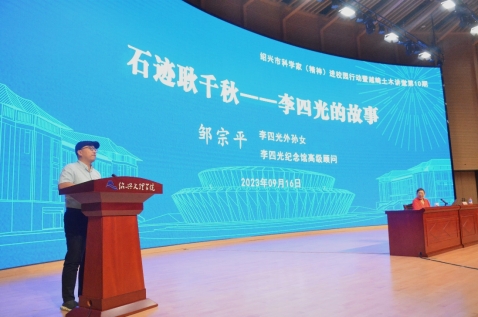 9月16日,绍兴市科学家精神进校园活动暨越崎土木讲堂第10期在风则江大讲堂报告厅举行,我国著名地质学家李四光院士的外孙女邹宗平作了题为“石迹耿千秋——李四光的故事”的主题报告。