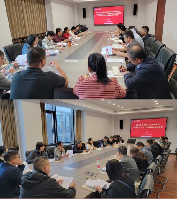 会议传达与政策宣讲。校工会组织传达学习《中华全国总工会关于认真学习宣传贯彻习近平总书记重要讲话精神努力完成中国工会十八大确定的目标任务》《习近平在同中华全国总工会新一届领导班子成员集体谈话时强调 坚持党对工会的全面领导 组织动员亿万职工积极投身强国建设民族复兴伟业》《在中国工会第十八次全国代表大会上的报告》等,并开展学习讨论,进一步加强工会干部理论武装,强化思想引领,更好地指导实践,推动工会工作。
