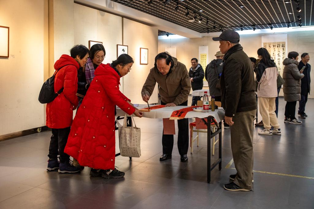 此次书画展吸引了众多嘉宾和观众前来参观。现场除了欣赏书画作品,还安排了书画协会的成员写“福”字和送春联活动。大家对老同志们的作品给予了高度评价,并纷纷表示通过这些作品感受到了传统文化的魅力。