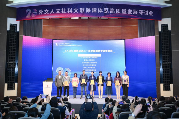 4月25日,“CASHL服务启动二十年·外文人文社科文献保障体系高质量发展研讨会”在复旦大学召开,我校图书馆荣获“文献服务专项贡献奖”。此次会议由CASHL管理中心主办、CASHL全国中心复旦大学图书馆承办,来自全国各地的专家学者、图书馆员及出版界人士与会。会议表彰了荣获“卓越贡献奖、突出贡献奖、文献服务专项贡献奖以及资源建设专项贡献奖”等奖项的32所高校。