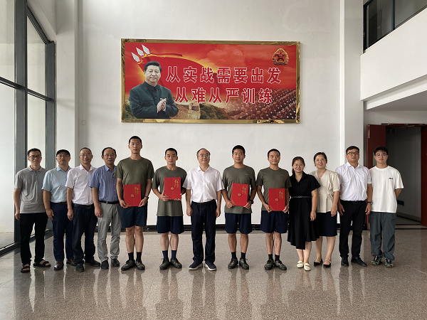 黄坚祝贺同学们经过严格的体格检查、政治考核,成为光荣的中国人民解放军一员。同时也对同学提出三点期望:一是牢记使命、勇担重任,不断展现新时代文理学子的正能量,为开创国防和军队现代化新局面贡献自己的专业力量;二是勇往直前、严格要求,在实践中不断磨砺意志品质,用实际行动履行军人的神圣使命;三是继续秉承“修德求真、追求卓越”的校园精神,入伍后与母校保持联系多传捷报。